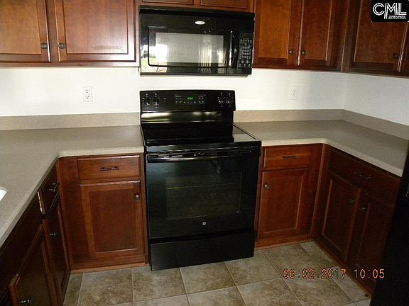 - Kitchen: Bar, Pantry, Counter Tops-Solid Surfac, Cabinets-Stained, Floors-Vinyl