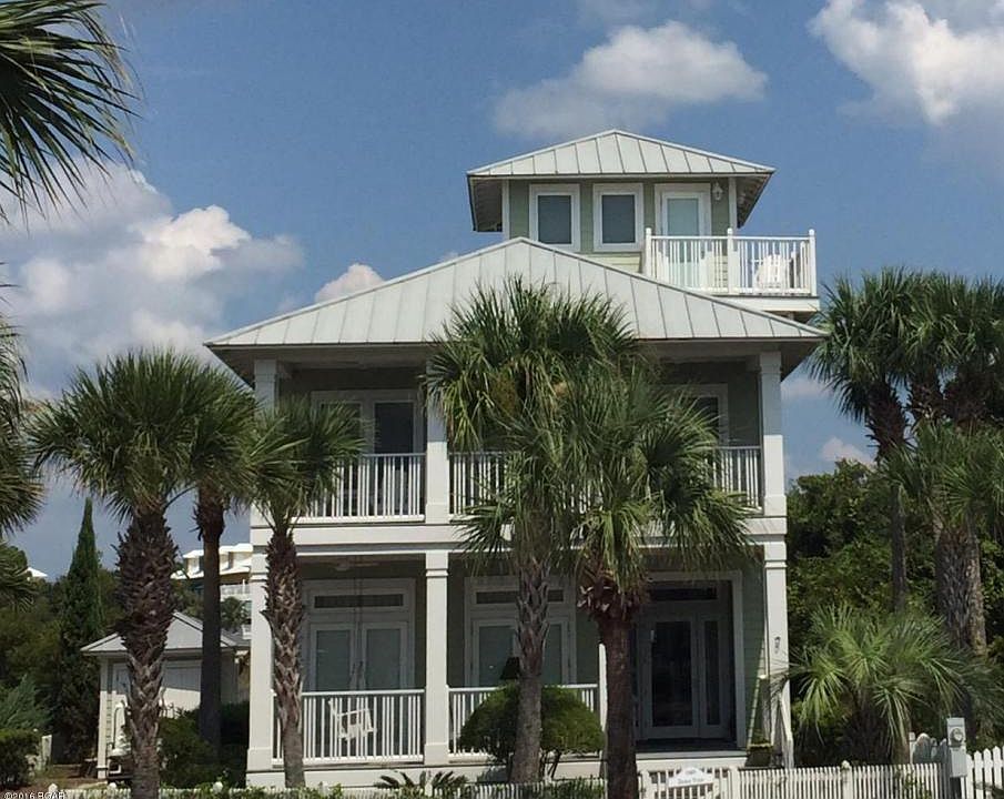 LOCATED JUST STEPS TO THE BEACH and Sitting in the gated BEACHFRONT community of Carillon Beach, this charming 2 1/2 story Cottage Style Beach home is a perfect home to live full time or for investors. This 4 bedroom, 4 bath home overlooks the lake and features beautiful hardwood floors and tile throughout, stainless steel appliances, large front porch, screened in back porch, outdoor cooking area with grill area and fire place and gulf views. This quiet Village of Carillon Beach gives you a feeling of tranquility. It offers fishing, 2 tennis courts, basketball court, childrens pool w/playground, beachfront pool,lakefront pool, parks for walking your pet. HOA house that serves as a Church on Sundays, spa with massage, nails, hair, beach bar, coffee shop, ice cream shop, souvenir shop