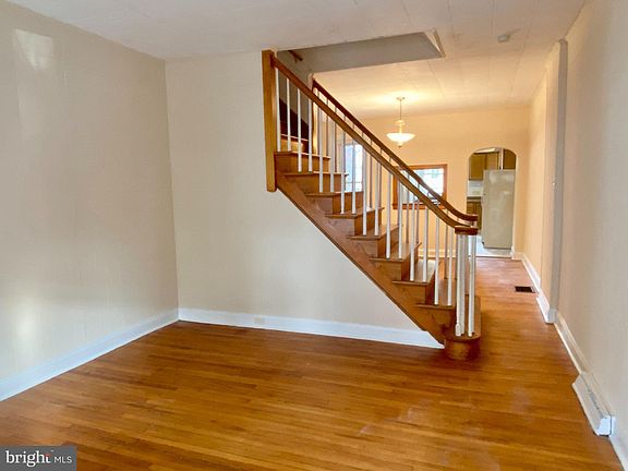 Spacious, 4 Bedroom Brick Row House in central Pottstown location. Large, welcoming front porch. Hardwood flooring throughout Living Room and Dining Room. Eat-In Kitchen with tile flooring. An open bannister staircase leads to the second level featuring 2 Bedrooms, a walk-through Sitting Room/Office, plus a Full Bathroom. The third floor features 2 additional spacious Bedrooms. New carpeting throughout the upper floors. Full Basement with Bilco-style outside entrance. Level back yard. Off-street parking for 2 cars (front to back). Convenient location close to recreation, shopping, commuter routes, and Pottstown's revitalized downtown offering an array of new shop and eateries.