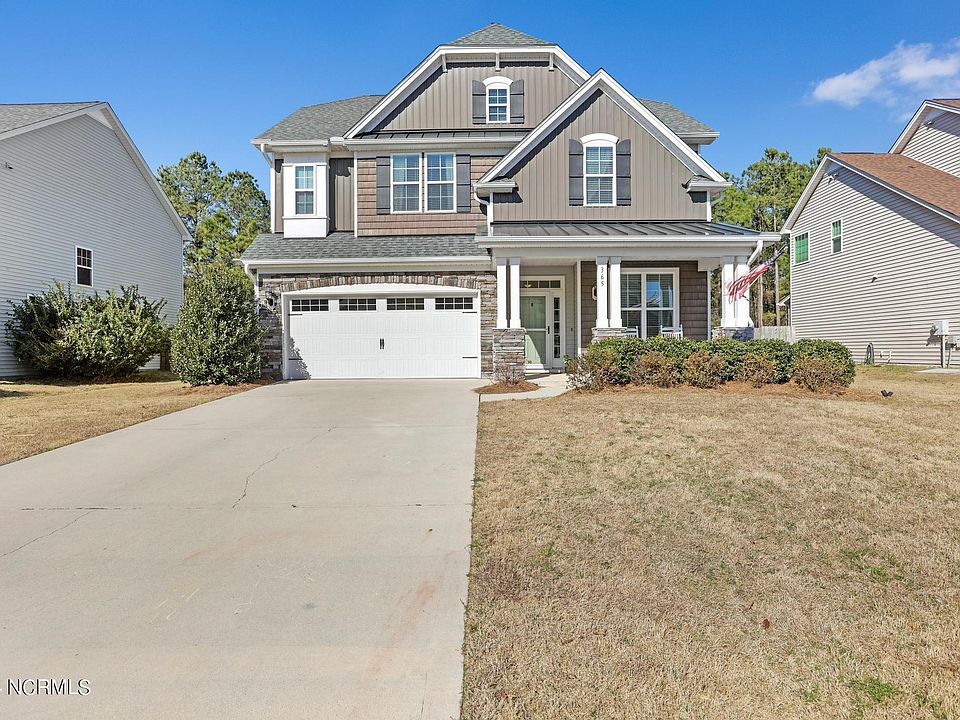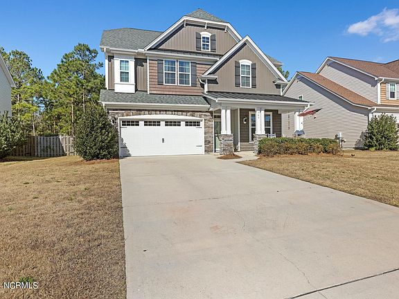 Experience the epitome of luxury living just steps away from the beach! Prepare to be captivated by the irresistible charm of this home's curb appeal. The craftsman-style architecture showcases elegant pillars that grace the front patio, overlooking the meticulously landscaped front yard. As you step through the picturesque front door, you'll be greeted by a breathtaking entryway adorned with stunning wood plank flooring. The foyer provides a glimpse into the adjacent dining room/office and the inviting family room. This impeccably maintained home boasts an array of upgrades that will fulfill all your desires. Step through the French doors into the home office, where coffered ceilings and chair rail detailing add a touch of sophistication. The kitchen is a perfect blend of elegance and functionality, featuring upgraded stainless steel appliances, granite countertops, pristine white cabinetry, recessed lighting, and gorgeous white tile backsplash that enhances the overall aesthetic. With ample cabinet and countertop space, the large center island and the spacious kitchen nook offer both practicality and style, with a view of the backyard. The expansive family room is adorned with custom built-ins and a classic fireplace, creating the perfect ambiance for cozy winter evenings. As you ascend the stairs, you'll be greeted by the Master Bedroom and three generously sized secondary bedrooms, all equipped with walk-in closets. For the ultimate in comfort and luxury, retreat to the Primary Bedroom suite. Tucked away for privacy, the Primary Bedroom boasts a spa-like Bathroom with two separate vanities, a luxurious soaking tub, a private restroom, and an expansive walk-in closet. On the third floor, you'll discover an unfinished bonus room that offers additional storage or the potential for easy conversion. If you enjoy outdoor living, you'll absolutely adore the screened-in back patio, complete with a fan to keep you cool on summer evenings. Enclosed by a privacy fence, the backyard also features an extended decorative patio. This pristine home is conveniently situated halfway between Jacksonville and Wilmington, in the highly sought-after subdivision, The Neighborhoods of Holly Ridge. Don't miss this incredible opportunity to own a piece of everyday luxury