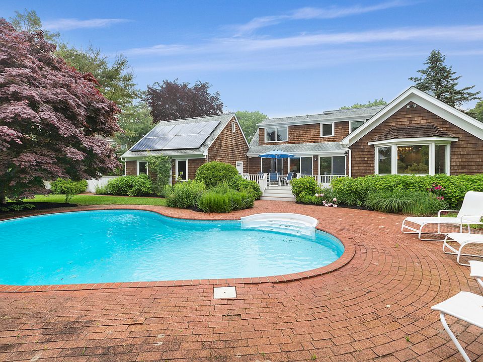 Conveniently located South of the Highway in Water Mill. Immaculate Traditional featuring 4 bedrooms, 3 baths, heated free form pool, all surrounded by mature professional landscaping for privacy. The first floor offers a cozy den with fireplace, large newly renovated, gourmet kitchen with viking and sub zero appliances, open dining area, sun filled living room with glass sliders to the deck, plus a 1st floor master suite. The 2nd floor offers 2 guest rooms and a full bath. The finished lower level features an open entertainment space plus bonus 4th bedroom. All located minutes from pristine ocean beaches, shops and restaurants.