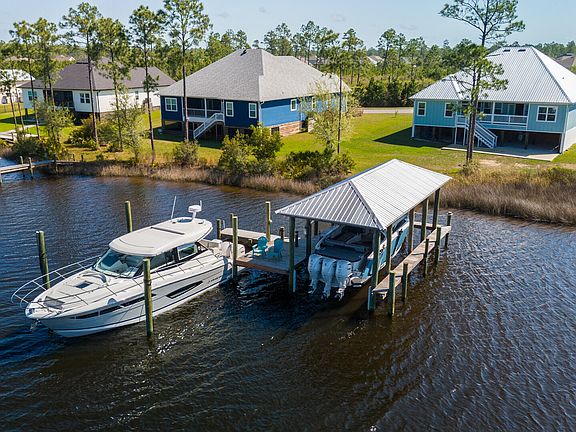Discover the ultimate waterfront lifestyle in this stunning 5 bedroom, 3-bathroom home featuring ~100 feet of prime waterfrontage and everything you need for seamless coastal living. With a 12,000 lb boat lift, a wet slip accommodating up to a 4 ft draft, and a 36 ft boat house. This property is perfect for boaters and water enthusiasts. The flow-through decking on the swim platform enhances durability and comfort, while the 50-amp service plug-in ensures your vessel is always ready for your next adventure.