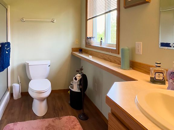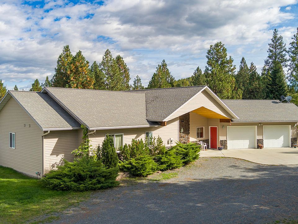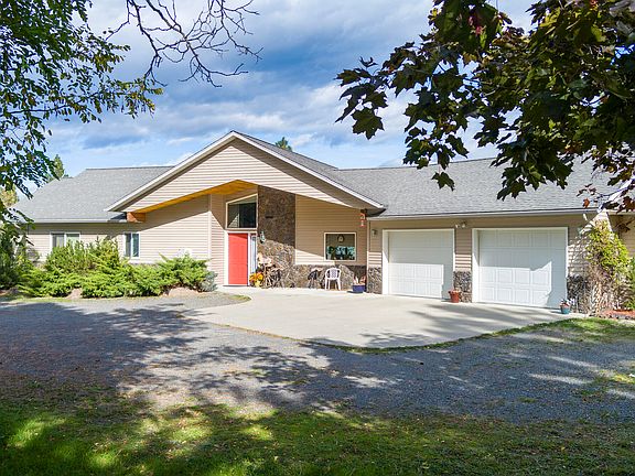 Beautiful custom-built home on 2+ acres, featuring a distinctive prow-front design with panoramic views. Vaulted ceilings adorned with cedar tongue & groove, complemented by a cozy gas fireplace. New stainless steel appliances highlight the spacious kitchen with a pantry and ample counter space. Luxurious master suite boasts a huge walk-in closet. Enjoy the convenience of an oversized garage and the close proximity to town.