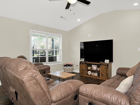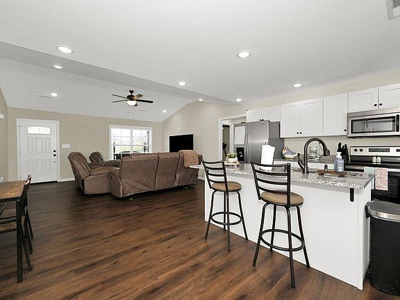 Hassel free living in this 3bedroom 2bath vinyl home that still feels like new. Built in 2022 this one level home features: Luxury Vinyl Plank floors throughout living areas. Open floor plan with vaulted living room ceiling that flows right into the kitchen. Great counter space with island and bar seating with granite countertops. Master suite has walk in closet, double granite top vanity in bath and plenty of room. Spacious laundry with shelving. Back covered porch for afternoon cook outs.