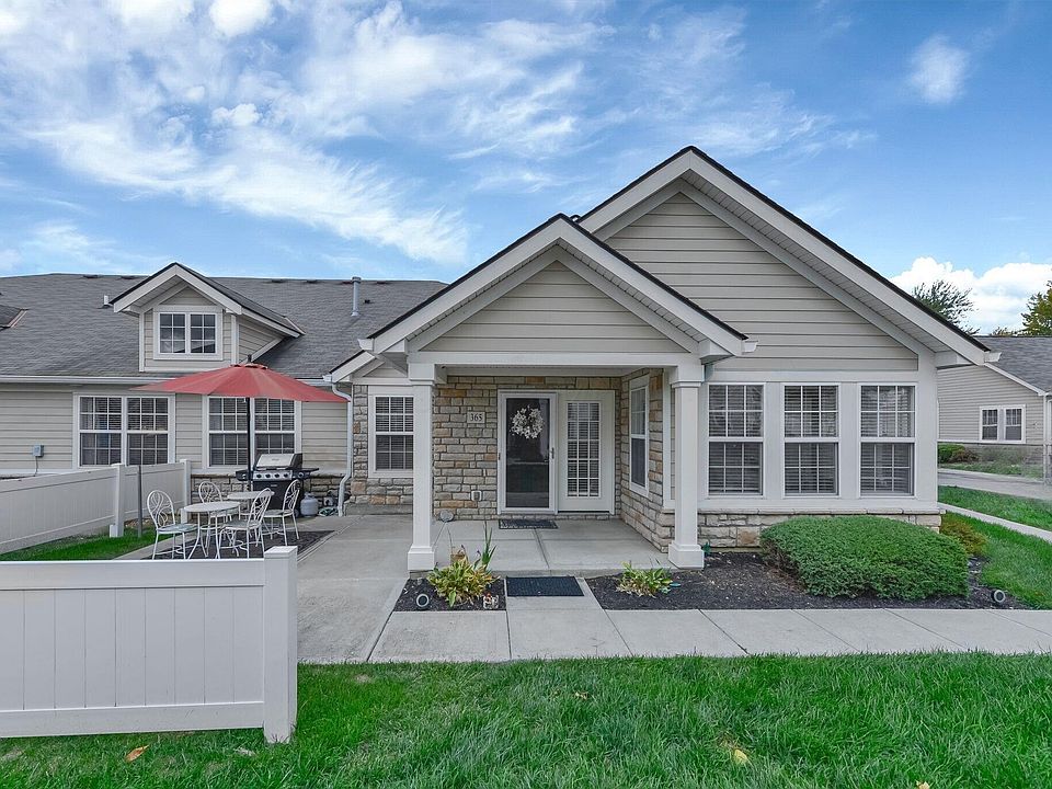 Welcome to this stunning 3 Bedroom 3.5 Bath Ranch Condo which features: Hardwood Floors, Great Room with Fireplace, Ceiling Fan and souring Ceilings. Kitchen with Tray Ceiling with recessed lighting, Granite Counter-Tops, beautiful Dark Wood Cabinets, Island, Stainless Steel Appliances, and 2 Pantries. First floor Laundry with a folding area, Spacious Owner's Suite with double Vanity, Walk-in Closet with Built-in and lots of storage space, a Den, also a Four-Season Room, finished Lower Level with a Full Bath and egress windows, a large 2-Car Garage, spacious Patio with Fenced Area, great for outside entertainment. Community offers an Inground Pool, Park and a Clubhouse.
