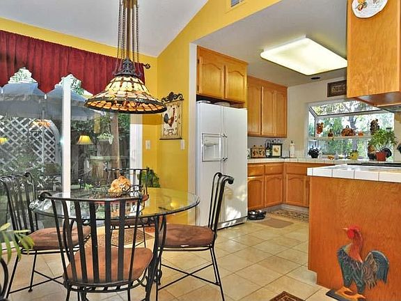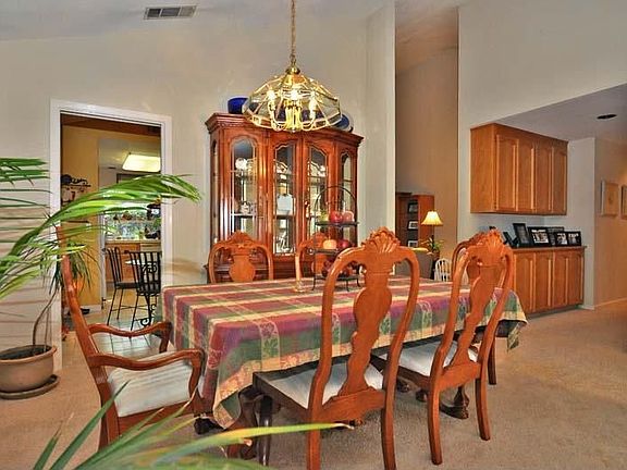 Former Single story model/model home amenities/2 fireplaces/vaulted ceilings abound/U shaped kitchen + semi-formal dining area off kitchen/sliding glass door to patio/ ideal location backs to creek/spa& storage/office remain "as is"
