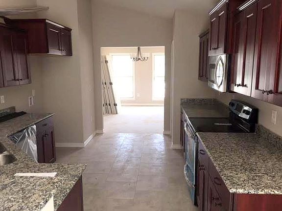 Beautiful new home with southern exposure opened up to the common area. Construction started the week of 1/23/2017. Granite in kitchen, bar, and bath, 10' foyer ceiling, custom stone wood burning fireplace, vaulted ceiling in LR, stainless appliances, wood flooring in foyer and dining room, fabric shield for windows, crown molding, and the coolest master tile shower and separate tub! Located very near the new proposed Gulf Coast Education Complex and the proposed Auburn University extension campus. Completion estimated mid April 2017.