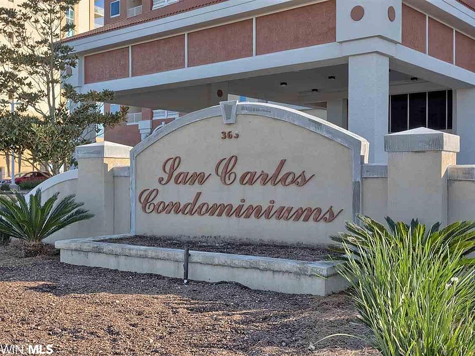 This lovely 3 bedroom/3 bathroom unit is located in the heart of Gulf Shores directly on Beach Boulevard. It is a gulf front unit with a large balcony. The views are fantastic both east and west as far as the eye can see. The unit is beautifully furnished and tastefully decorated throughout. It includes appliances, crown molding, a wet bar, attractive cabinets and spacious bedrooms. The master bedroom faces the Gulf and the ensuite bathroom includes double vanities, a jetted tub with a separate shower and a walk-in closet. The San Carlos Condo Complex is located within walking distance to some of the area's most popular attractions e.g.; The Hangout, Pink Pony Pub, Sea-N-Suds Restaurant and Surf Style Souvenir Shops. The complex has resort style feel, a zero entry pool, a fitness center overlooking the Gulf, sauna, conference room for social gatherings and covered parking. Ample overflow parking is directly across the street.