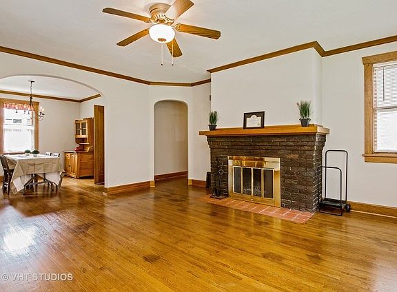 Built in 1929 this Plaqued Brick Tudor Style home has all the charm and character with it's ARCHED doorways, Original woodwork and doors, refinished Hardwood Floors on the main level and the original BUILT-IN cabinet in the Kitchen. There's also an Unfinished Floored Attic waiting to be transformed into another Bedroom or Playroom for the kids. The 4 x 6 Foyer opens to the Living Room with a wood burning brick fireplace, there's a formal dining room with new light fixture adjacent to the kitchen with new SS appliances. There are 2 main floor bedrooms and a bath with a laundry chute, the 3rd bedroom is on the upper level with a walk in closet and access to the Floored Attic. The Basement is finished with a 1/2 bath, another bedroom with a walk in closet and the laundry room and work shop. Other great features... FENCED YARD, 2 car garage and the Hot Tub can stay but sold As-Is (worked last Summer).