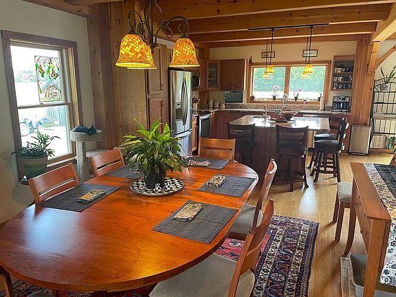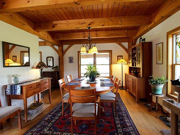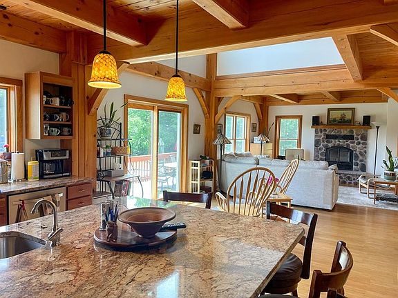 Timeless. Peaceful. Low Maintenance. Energy Efficient. Custom 5 BR, 3.5 Bath Timber Frame built in 2013. 79.74 Acres: 72 acres of woods; 7.73 tillable land ideal for hops, apple & hazelnut orchards, cannabis. 24 x 32 Pole Barn. Just 20 minutes to Cornell &. Built to last for generations with hand-cut timber frames and Red Oak, Hickory and Walnut wood sourced from the property. Enjoy the distant views and sightings of eagles, red-tailed hawks from your Wrap-around Front Porch and Back Deck. Open Concept. Custom Cherry Kitchen with island, granite counters & pantry. It's the perfect gathering place. Fieldstone fireplace with woodstove insert. Primary Suite has vaulted ceilings and tile bath. Loft. Family Room opens to Patio and your own private spa - hot tub and pool! Perennial garden, veggie garden, fruit trees and wild black raspberries. Andersen Windows, bamboo floors, cement board siding, Metal Roof, Central AC and Spectrum Internet & Cable. There's no place like it.