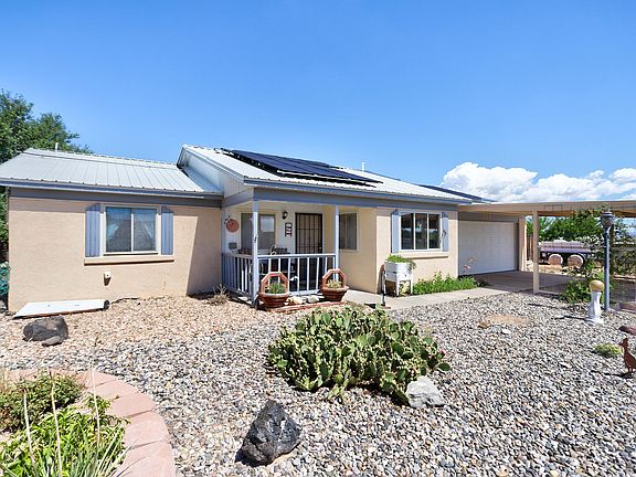 Welcome to your 3-bedroom Rio Rancho home featuring an outdoor oasis where you can unwind while admiring beautiful views including some hot air balloons. Solar panels, owned by a reputable company, power the home's refrigerated air system, offering energy efficiency through a transferrable Power Purchase Agreement. The key point here is that the homeowner pays for the actual energy produced by the solar panels, rather than owning the equipment. Updates in past several years include a new roof, carport, furnace, stucco paint, insulated garage door, partial flooring, stove & microwave. An adaptable sunroom while not included in the official square footage, adds immeasurable value to the living experience while the spacious garage can serve as a workshop catering to your DIY aspirations.
