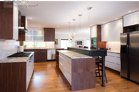 Stunning contemporary, custom home in Louisville! Completely renovated including 2nd floor addition. Great house for entertaining, features open-floor plan, Chef's kitchen w/Thermador appliances, in-floor radiant heat w/ evap cooler plumbed to each room. 5 beds or 4 beds plus an office. Custom details throughout the home w/ high-end finishes. Partially finished basement area for future expansion. Blocks to Old Town Louisville's shops, restaurants, farmers market, etc. Easy access to trails.