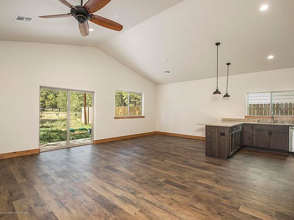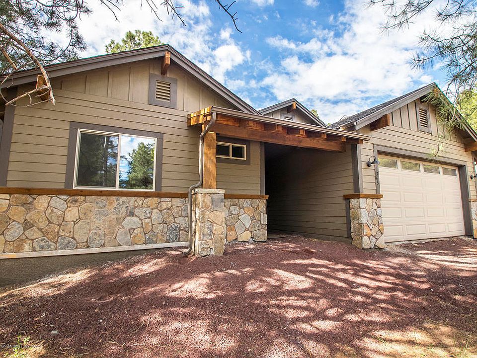 Come see another brand new custom home in Mountainaire! No expense spared in this 3 bed/2 bath 1470 sq. ft. single level home that backs National Forest! From the moment you pull in you'll notice the stunning curb appeal, exterior custom stone work and corrugated metal roof over the entrance area. With an open floor plan and vaulted ceilings the living area is filled with natural light. Alder doors and stain grade trim has been used throughout the home. Beautiful laminate flooring carries into the kitchen that has knotty cabinetry, self closing hinges, granite counter-tops, stainless steel appliances, and bronze hardware to finish it off. The master bedroom features a stained redwood accent wall with built in light fixtures. Dual sinks, a walk in closet and a gorgeous floor.....