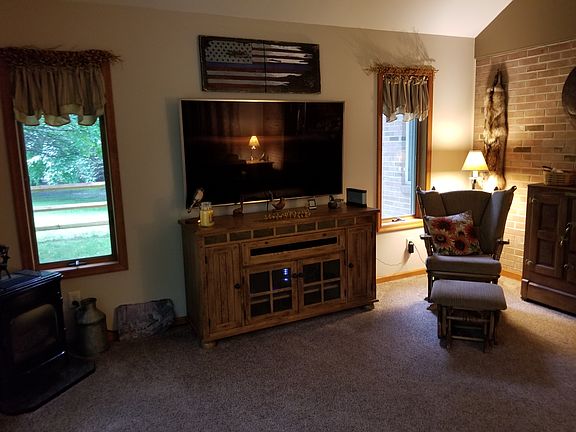 This super well maintained rancher sits on a sprawling 2 1/2 acre level lot sitting far back off the road. Enter the foyer with hardwood floors which adjoins the large formal living room featuring a wood burning marble surround fireplace and then leads to a massive dining room with gas brick surround fireplace w/raised hearth and 2 ceiling fans and bay window to overlook the spectacular backyard.You will have enough room to have the entire family over for every holiday dinner! Flanked to the right side of the house are 3 good size bedrooms and 2 full baths.The cathedral ceiling family room/great room brings in lots of natural light with all the windows and sliders that lead to the back deck with built in retractable awning and private back yard with trees. Pick a tree or two to hang a hammock. Main floor laundry is of nice size and has exit door to the back deck. The large 2 car garage also has walk up stairs to attic storage.The full finished basement offers a 3rd fireplace, recessed lights and a huge walk in closet. Additional unfinished storage and walk up bilco door. If you are looking for a custom home on a large picturesque lot with one floor living this is the home for you! Bring your own personal touches to make this truly your own custom home!