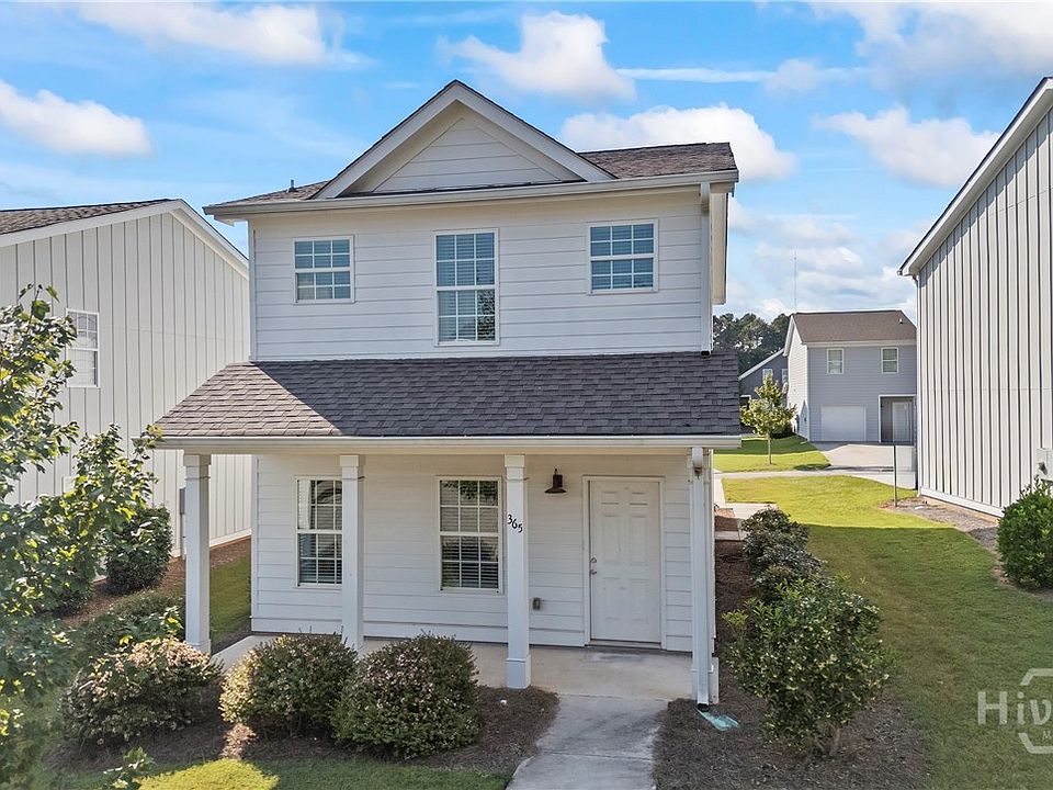 Welcome to Lantern Walk! This well maintained home features 3 bedrooms and 3 full bathrooms. Enjoy the charming covered front porch and step into an open floor plan with 9-foot ceilings. The kitchen offers quartz countertops, stainless steel appliances, and a subway tile backsplash, opening to a bright living room with recessed lighting and multiple windows. There's a bedroom and full bathroom on the main level. Upstairs, the primary suite includes a large walk-in closet and en suite bathroom. A third bedroom also features its own full bathroom and walk-in closet. The laundry room is conveniently located upstairs. Outside, enjoy a private storage closet out back and a back driveway with ample parking for multiple vehicles. The HOA covers lawn care, so no need to bring your mower! The interior has just been freshly painted and professionally cleaned. All appliances are to remain. If you are looking for move in ready, look no further!
