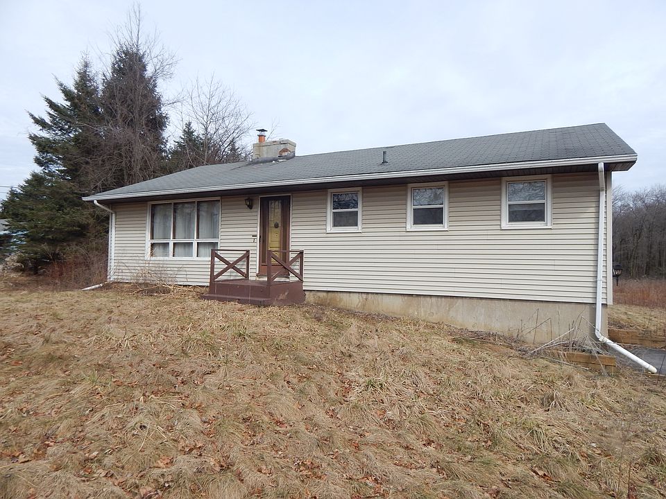 Nice ranch in the country with over 6 acres of land ideal for horses, animals, etc. House has a new boiler, new baseboards, new windows, new siding and is freshly painted. It has a large eat-in kitchen with brand new SS appliances and new kitchen cabinets and counters. There is new flooring throughout. The bathroom is remodeled and has a handicapped accessible shower. The basement has a partially finished area and a spot for a sunny office next to the garage. There is a work bench in the basement. There is a brand new walk to the front door and a nice deck on the back. The house is surrounded by farmland in a very quiet country setting.