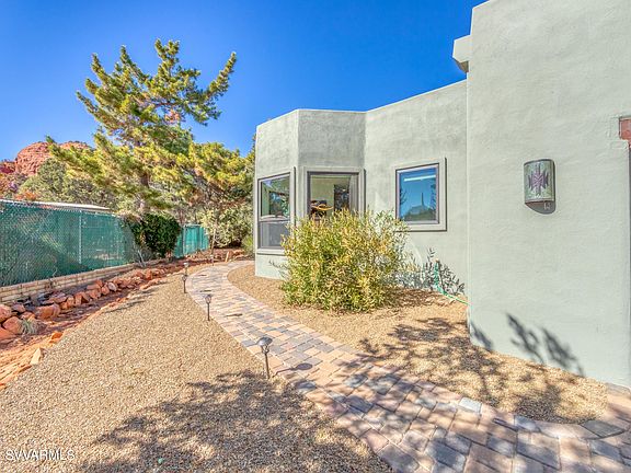 MAGNIFICENT VISTAS seem a part of the living space in this 3 Bedroom, 2 Bath Santa Fe Style home located in one of West Sedona's vibrant neighborhoods close to shopping, dining, and outdoor recreation opportunities. This property has had approximately $95,000 of value-added improvements (See List of Improvements) which includes a new restored membrane roof, renovated kitchen, new HVAC, paved driveway, granite counter tops, and backyard patio with rock installation. Other features include a sliding door for each bedroom allowing access to the backyard patio, travertine tile, sunken living room with gas fireplace, whirlpool tub in master bath, and lots of windows to enjoy the rugged landscape views and so much more.