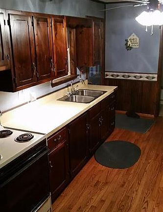 2 bedroom, 1 bath, wood burning fireplace, enclosed back porch for additional storage, 1 car garage, large driveway, shed, brick patio, public water and sewage, back yard surrounded by woods, lots of potential.....