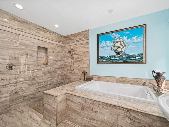 This beautifully landscaped four-bedroom home with large office was completely renovated and updated (2022), ROOF RECENTLY INSPECTED..offering 12 ft.ceilings in main rooms and in office, a spacious kitchen with 14 drawers, 23 cabinets, a self-lighting walk-in pantry, wine cooler, instant hot, new appliances, gas cooking, microwave/convention oven, granite counters, and huge island. Laundry/craft room features 8 cabinets, 9 drawers and 9 ft. counter. Three linen closets, two hall closets, and a step-in closet in the master bath offer abundant storage, in addition to walk-in master closet. All new insulation, AC ductwork, and ceilings fans throughout (2022) keep this executive home comfortable year-round. All new lights and electric panel make for carefree future maintenance. Large living room opens into lanai thru 12 ft. pocket sliders. Dining room easily seats 10. Spacious covered lanai and large wet bar offer gracious outdoor entertaining around screened 15x35 salt water/solar heated pool 4ft. deepgreat for pool games and keeping young children safe. Pool rescreened and refinished (2022) with all new equipment. Pool area features enclosed storage for pool and yard supplies and equipment. Two of the large secondary bedrooms open onto the pool through pocket slider. Large yard is beautifully landscaped and has an all-new (2022) sprinkler system. Oversized two-car garage has heavy-duty vinyl flooring, 17'ft.of enclosed floor to-ceiling storage- and space for a workbench. There is a $45.00 lease preparation fee once approved.