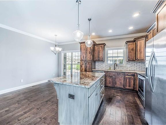 Gorgeous, spacious & livable home situated in popular Drakes Ridge. Custom cabinetry with subway tile backsplash & granite counters, large breakfast area plus formal dining. Stone fireplace in great room with ship lap on feature wall. Large owner's suite with tile shower & jetted tub. Bedroom 4 is upstairs with a full bath. Covered patio with privacy fenced backyard plus a great detached garage and professional landscaping. You will feel like you are home when you step in the front door.