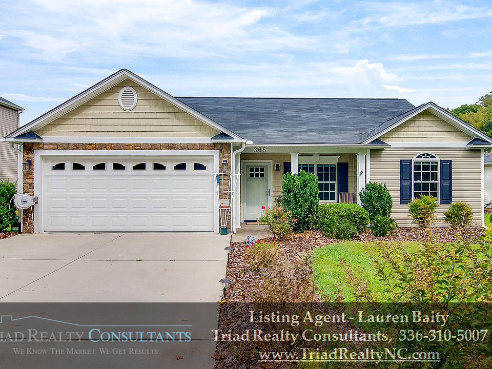Nicely landscaped single level newer 3 BR 2 BA home with over-sized two car garage in newer WS residential subdivision just off Hwy 52 north of Midway. Easy access to Winston Salem, Lexington, High Point and Greensboro. High end upgrades include granite counters and ceramic tile in kitchen and baths, custom cabinetry, stainless appliances, electric fireplace with stone surround, master suite with walk in closet, alarm system, gas water heater, two car garage with epoxy sealed concrete floors, large fenced-in back yard with fire pit, cozy sunroom, attached storage building, newer stain-resistant carpet throughout. Ready for occupancy November 1st. 12 month lease. Pets considered with non refundable security deposit. Credit check, income verification, first month?s rent and $1250 security deposit required. Contact Sandra Boles for application or more information. Home is pre-wired for ATT security system and camera mounts. Tenant responsible for utilities, trash removal and regular lawn maintenance.