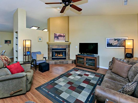 Pristine condition and ready for new owner's...this wonderful home has 3 spacious bedrooms, split floor plan, living room features a gas fireplace and cathedral ceilings, open kitchen with breakfast bar, upgraded cabinetry, solid surface counters and large pantry. The master bedroom has a large side-by-side closet plus a walk-in closet. Both front and back yard have beautiful landscaping. The 3rd car garage has an extra tall door to accommodate a small RV or trailer. A gas heater warms the garage and workshop that has tons of built-in cabinets. Located in a delightful neighborhood, minutes away from shopping, hospital, and schools...THIS HOME IS A MUST SEE!