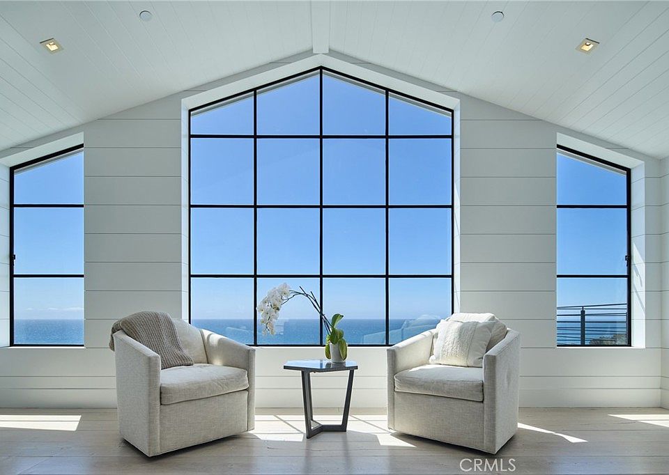 A captivating coastline panorama unfolds before this thoughtfully designed collection of interior and exterior spaces. The distinctive design, architectural elements, and refined composition of finishes and features beautifully articulate an elegant yet comfortable environment. A spectacular coastal tableau stretching almost sixty miles elevates nearly every living area. The extraordinary great room, crowned by walls of ocean-facing windows, affords an ideal setting for modern, everyday living as well as entertaining. The primary retreat, with an exquisite bath and dual wardrobe rooms, opens to a secluded ocean-view terrace with a spa. The three additional bedrooms with en suite baths, an office, and informal living areas are both accommodating and inviting. A small selection of interior appointments includes light oak floors, imported stonework, paneled walls, and designer light features; fine fixtures and appliances; steel windows; and multi- dimensional home-automation technology and ambiance control. The exterior surround – of equal desirability presents a series of moments created to capture the sights and sounds of the natural setting – including a cloistered, ocean-view entry courtyard with fireside seating, a verdant tiered garden, and multiple terraces with sparkling Pacific vistas. Optimal proximity to iconic beaches, the region’s amenities, and abundant lifestyle opportunities further distinguish this exceptional offering.
