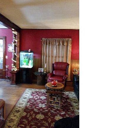 Spacious home with large family rm heated by large woodstove. 4th bdrm has no closet currently used as office. Hardwood floor and beautiful woodwork throughout. One car garage has walk thru to office area (14x11)and another garage 37x30. Enclosed room 23x6 was former front porch. New entry door, some hardwood/carpet replaced.