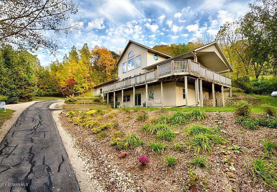Wake up every day to breathtaking views including seasonal visibility of the Mississippi River. Walk into the beautiful entry and you will notice the curved staircase leading to the loft, cathedral ceilings, fireplace and wall of windows that lets the light pour in even on the darkest days. Surrounded by trees and bluffs, you can walk out your back door and hunt on 40 acres.