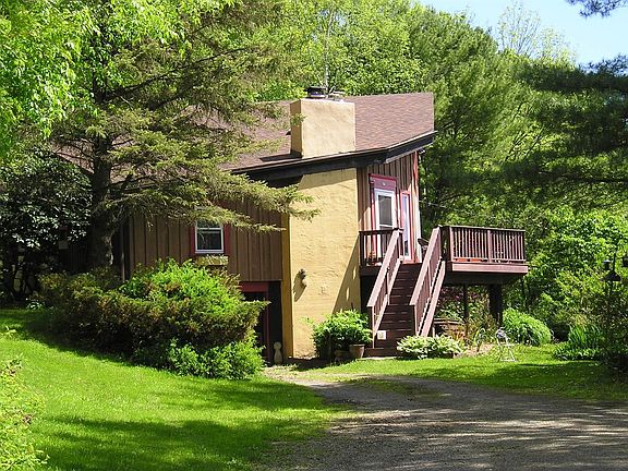 What a Cool Place! A unique and comfortable retreat. Long distance views, beautiful landscaping, moss-covered paths, multiple decks, a separate studio in the woods and much more. The Contemporary design of this house offers 2-3 bedrooms plus a Master Loft Suite, 2 bathrooms and two open, spacious living areas with the touch of an artist everywhere you look and a beautiful Stone Fireplace with wood stove insert. It's a one-of-a-kind! An ideal retreat, tucked away and yet easy to access.