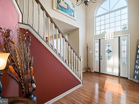 WOW! This Imperial model has a 2 foot bump out on the first floor giving the largest model in Carriage Glen even more space! This home boasts a 2 story foyer and a 2 story family room with a back staircase. Tastefully decorated with modern colors, this home sits on a premier lot backing to a water view and fountain. Living Room/Dining Room split offers ample space for entertaining. Step inside the kitchen to 42 inch cherry cabinets, island with bar stools, tile backsplash, granite counter tops, stainless steel appliances, and recessed lights. My favorite spot is the 2 story family room with back staircase and niche for a desk or bar area, a gas fireplace and recessed lights. Master bedroom has a vaulted ceiling, sitting area, two walk in closets and a full bathroom with stall shower, garden tub and double sinks. The basement is unfinished waiting for your touch and has bilco doors. More items to include are first floor laundry, loads of closet space, 4 generous sized bedrooms, a first floor study or office, brand new pvc decking with post lighting, Hot water heater (2020), Ring doorbell, Solar $151/month, chair rail, shadow boxing, new front door with double light panes, and 6 zone sprinkler system. Great location to all major cities and shore points. A must see! Showings begin Friday August 13th.