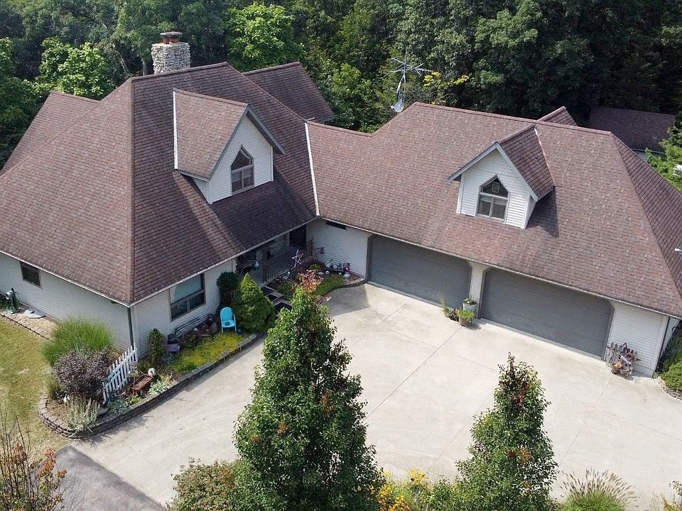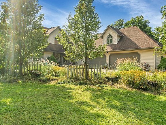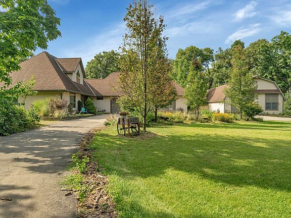 Welcome to your private sanctuary nestled on over 5 wooded acres with creek. Total square footage of home in finished areas is 4,603 square feet! This beautiful 3 bedroom, 4.1 bath home offers a perfect blend of comfort and natural beauty. As you enter, you are greeted by a spacious and inviting living area with stone fireplace, high ceilings and large windows that flood the space with natural light. The open design seamlessly connects the living room, dining area and kitchen, making it ideal for both entertaining and everyday living. The kitchen boasts ample cabinets and counter space perfect for preparing meals. The formal dining room can be easily transformed into an office. The master suite is a true retreat, featuring a full bath with soaking tub and walk-in shower. The home, shop and garage all have floor hot water heat. The finished, walk-out basement includes an expansive family room, game room, exercise room, workshop and storage. Don't forget about the 27x21 bonus room and 4 car attached, heated garage! Need more space? The 50x32 detached garage with 19' ceiling, 12x12 door, heat and a/c, loft and full bath can house all your toys including motor home. Other extras include alarm system, all house and shed generator, storage shed, potting shed, chicken coop and firewood storage. This is a must see!!