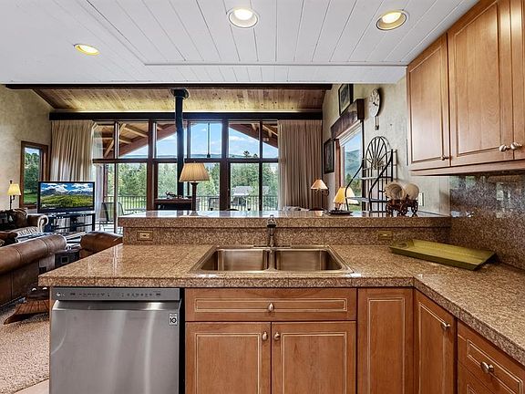 This beautiful 2-unit condo has 2165 sq. ft of pure comfort and comes furnished. You will exhale the moment you step into this beauty. It's the ultimate home away from home. The foyer, entering from unit 748, is bright with natural light and offers hooks for coats, a bench with storage and plenty of room for boots, golf clubs, skiis, etc. As you enter into the open kitchen/dining/great room area, you will see the attention to detail immediately. The kitchen has great storage space, granite tiled countertops and backsplash, a peninsula with extra seating, light custom cabinetry and full sized stainless steel appliances. Seating for 8 along with a built in buffet allows easy entertaining. From the comfy furniture to the gas stove, you will melt taking in the extrodinary mountain and golf course views through the great room which leads to a covered patio. The owners took complete advantage of their exceptional location so they tastefully raised the covered roof on the back deck to an open gable style to allow the breath taking views front and center! There is also a full bath, mechanical/laundry room on this level for convenience as well. Enter unit 746 through a large opening to the main suite. You will find a gas insert nestled in a floor to ceiling stacked stone surround with a stone hearth, DVD Cubby and big screen TV. Sweet dreams in the luxury king size bed and wake up to the same amazing views with your own private patio! The spa-like bath offers a custom vanity with a slab granite extended counter top, oversized walk in tiled shower with a granite seat and upper end fixtures, medicine cabinet and can lighting. The huge walk-in closet with makup area, laminate flooring and additional entry complete this area of the condo.