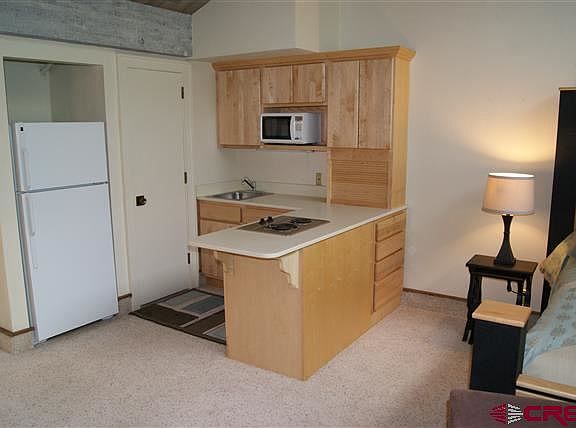 Comfortable studio on the east side of Gamble Oak facing west with a small patio for watching the sunset. Lots of windows make this a nice bright sunny unit. Kitchen has been remodeled with very nice cabinetry and built-ins for your TV, VCR and computer study area. The unit is being sold unfurnished except for the sturdy king size bed and end tables. Full size refrigerator and 2 burner electric stove makes for a nice efficient living arrangement. Live here full time or use as a second vacation home. Take advantage of the great location not far from Durango Mountain Resort for skiing in the winter. The shuttle will pick you up at the front door of the Main Lodge. Ask about Glacier Club Golf Memberships in addition to future golf privledges for Tamarron owners and guests. Gamble Oak has already had it's exterior renovation and the assessment has been paid. Cuckoos Restaurant and Sports Bar is open in the Main Lodge for your enjoyment. Tamarron has many amenities you would expect from a topnotch resort area. Indoor/Outdoor Pool, Spa and Fitness Center open every day. Arrange for a massage after a full day of skiing and then sit in the hot tub or sauna. Tamarron has it all right here in the Coloardo Rocky Mountains!