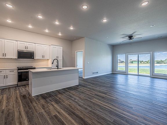 Welcome to The Residences at Bryson Lake! Located only 6 miles from Whiteman Air Force Base along the Spirit Walking Trail This 3 bedroom, 3 1/2 bath, 2-car garage unit provides a unique and highly functional design that includes the master bedroom on the main floor! Sleek, upscale finishes including quartz countertops, and stainless appliances are throughout the unit. Stainless appliances include a refrigerator, stove/oven, dishwasher, and microwave. Washer and dryer are provided in unit. Patio provides uninterrupted view of Byson Lake. Enjoy a stroll around the lake, a jog at the new exercise facility/clubhouse, a swim at the pool, or burn some energy at the playground! A $95 HOA fee covers high-speed internet, basic cable, trash pickup, and lawn care. Small dogs are welcome (max of 2) with a $500 refundable pet deposit, meet and greet, and proper paperwork.