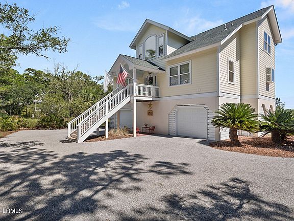 HIGHLY MOTIVATED SELLER! BRING OFFERS! Gorgeous custom built home with enchanting marsh views. Partially furnished. Walk to Fripp's best beach! Short golf cart ride to Ocean Creek Golf course, Bonito Boathouse Restaurant, deep water marina and other Fripp Club amenities. Open concept floor plan including kitchen, dining, family room. Gourmet chef's kitchen with room for an island and stools. Double sided fireplace. Rich pine floors on main level. Primary bedroom suite on main level with updated bath, walk-in shower and double vanity. Unique upper level ''walk way bridge'' and 2 bedrooms and bath with room for 2 additional bedrooms. Large main level laundry with ample storage. 2 garages, workshop, storage and ground level hurricane 'smart vents'.. Landscaped circular driveway. Multiple large windows and newly enclosed porch to enhance the unobstructed marsh views. Convenient 3 story cargo lift. New roof 2023. Expansive brick patio overlooking marsh. Includes all major appliances. Offered unfurnished.