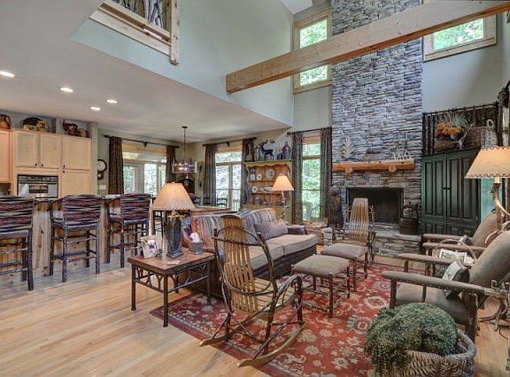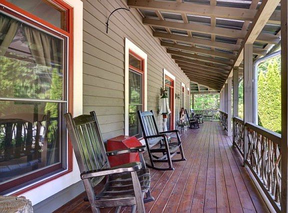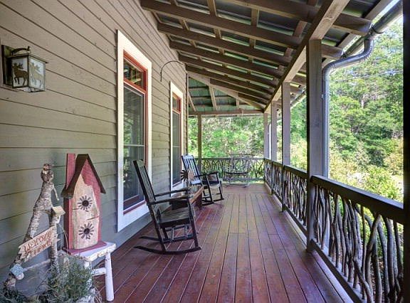 Excellent, like new, David Bock home, barely lived in. Only 4.0 miles from town. Screened from the road by a thick Holly hedge. View to the rear is completely private with grass gently sloping to the tree line. Property is bordered by Norton Creek on the west, an unnamed stream lies to the south and Big Creek crosses it farther back. This parcel is like a wildlife sanctuary, with the serenity of songbirds singing continually, extensive native plants, shrubs, beautiful tall mountain laurel and shade trees. The house is a three bedroom, three full bath with a four bedroom permit. Generous open floor plan, bright interior, soaring wood burning fireplace with gas starter, granite and stainless kitchen, master on main, second master on upper floor. Oak floors lower, expansive wrap around front porch in front and a screened porch in the rear looking out on a broad, open garden area. Two heating systems gas/electric central air. Garage has diamond plate metal Gladiator storage cabinets, room for a small workbench, and additional storage room above the ceiling. Outside the subdivisions, no restrictions.