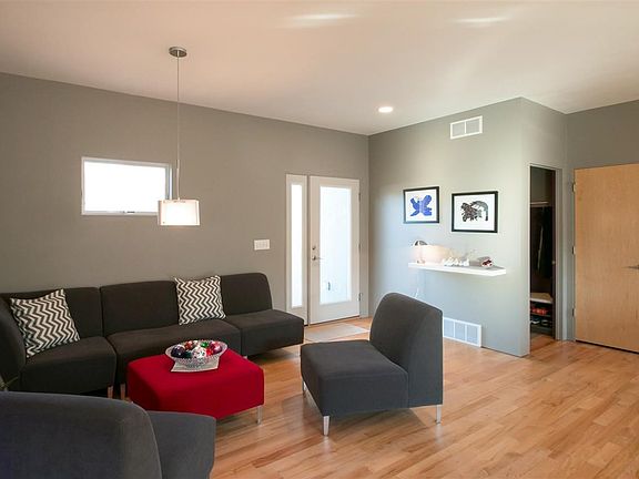 Perched with spectacular views on the edge of a deep wooded ravine, this unique home has a simple exterior that only hints of the modern elegance awaiting inside. Gorgeous kitchen with granite counters, Essany cabinets, stainless steel appliances. Open floor plan with maple hardwood floors. Main-floor master bedroom with deck access, master bath, and walk-in closet w/ built-ins. Mudroom off garage. This one-of-a kind home is a stylish haven where nature, art, function, and simple elegance come together.