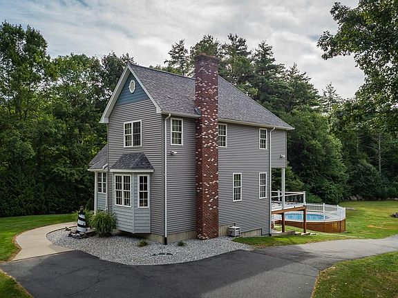 Spectacular contemporary colonial situated in a beautiful area of Belchertown on approximately 5 acres. Potential to develop a buildable lot. Buyer to confirm with building dept. Three car, 1000 sf garage built in 1995 with electricity, offers storage for vehicles, boats, or workshop. Horses anyone? Multiple decks to relax and enjoy with family and friends. Hot tub/ spa and AG Pool left for buyers enjoyment. Warm hands while sitting around fire pit. Spacious Family rm with window seat has access to deck. Stereo speakers to be removed. Living rm has a flue for wood stove on attractive granite hearth and base. Walk out basement leads to patio. There is a flue for wood stove in basement, a 5000 watt Gen Tran, a On-Q to contain cables. Seller owns in-ground propane tank (2 zone) Large master suite, 2 other comfortable bedrooms. Heated floors in 2nd floor bathrooms. Lots of storage, closets. All information provided by seller. Face masks must be worn when entering property.