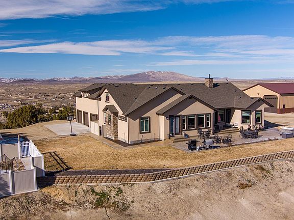 Custom Built home like no other in Spring Creek! Sitting majestically on almost 4 acres, with spectacular views surrounding the property, this gorgeous home was built to impress! The kitchen features all custom built cabinets by Alex Crouch, granite counter tops, 2 kitchen islands, 5 ft. refrigerator, 2 gas ovens, 1 electric oven, walk-in pantry and beautiful tile flooring throughout. The wet bar includes a wine fridge, a mini fridge and an ice maker. The main bedroom is spacious with an extra large walk-in closet, a soaker tub, and a walk-in shower with double shower heads. Every bedroom on the main has an ensuite! The upstairs bonus room features a theater room with a built in entertainment system and speakers throughout. This home has a ton of upgrades including 10 ft walls, 2 furnaces, 2 air-conditioner units, 2 water heaters, 2-200 amp panels for power, fully insulated garage, a pellet stove, & all windows are triple pane! Now let's talk about the outside! Wow, Fully insulated 48X60 shop built for RV's, with electrical outlets and 50 amp breaker. The yard has automatic sprinkler system and drip. If you love entertaining or hosting, this home is sure to dazzle your guests!