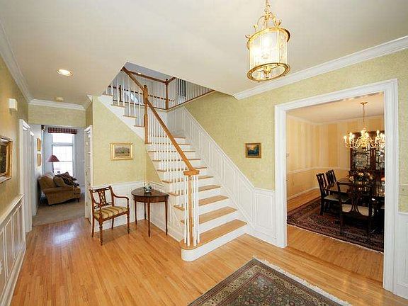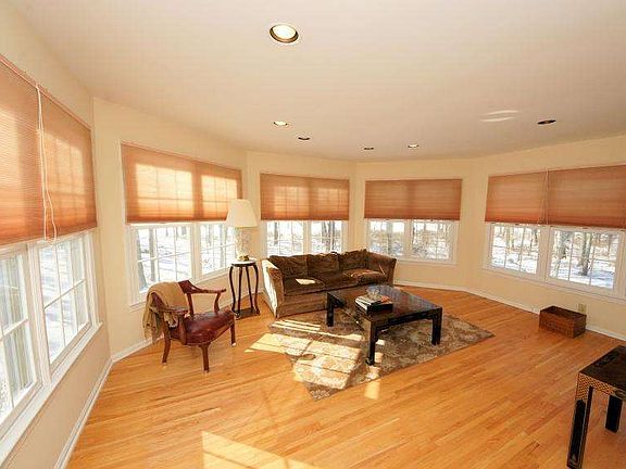 In a delightfully scenic Skillman setting, set back from the road on a pretty, wooded parcel with a white picket fence, this lovely home is bright and breezy and filled with modern amenities. There's so much to love here! The floor plan features a living room with coffered ceiling and wood floors with French doors into an inviting sun room. The dining room is large and comfortable, as is the family room. Home cooks will appreciate the accessibility to entertaining rooms in the user-friendly kitchen with new stainless steel appliances. A first floor bedroom and bath are useful for extended stay guests and, the finished daylight basement allows for even more overflow when the party grows. On the second level, find a charming master with an oversized bathroom and its own private deck. The closet space here is impressive and storage is abundant throughout the house and in the three car garage. There are five bedrooms in all. Just Beautiful!