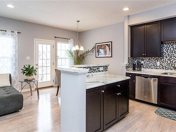 This 3 year young townhome offers a flexible open concept floor plan that is great for entertaining. The attached garage offers added convenience. As you enter the home you are welcomed by the light and airy paint colors & wide plank flooring that runs throughout the whole first floor. The spacious island kitchen features an abundance of rich dark maple cabinets, upgraded counters, mosaic tile back splash and stainless steel appliances. The family room & dinette are open to the kitchen for easy entertaining. The main level and master bedroom are equipped with built in speakers as an added bonus! Upstairs you will find the master bedroom with full bathroom, 2 bedrooms, another full bathroom & laundry room. The large finished lower level features upgraded carpeting and has additional storage. Enjoy your summer evenings taking in the the view from the large exposed aggregate back patio! Convenient Location! Neighborhood park!