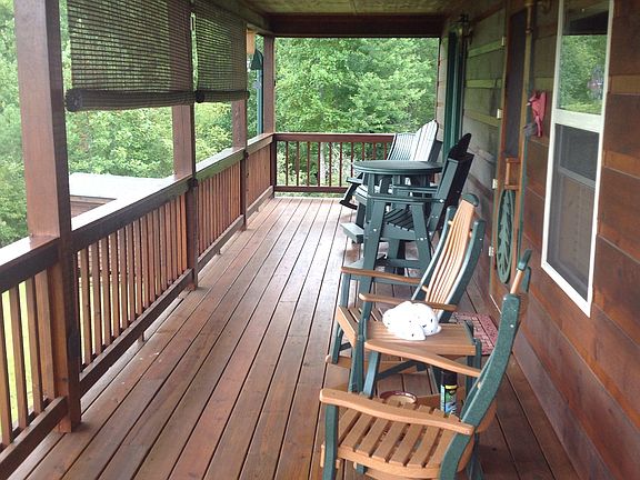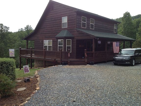 Cabin style with chink spidering with matching structure to park the car, split rail fence all located on the side of Kolb Mtn in the gated community of Laurel Brook with a great view of the mountains and approx 1.5 miles from Lake Nottely in Union County Ga. Basement has been finished to include 2 designated storage areas, formal dining room, TV area and recreation game space. Basement has been moisture sealed, rewired electrically and tastefully done. View picture.
