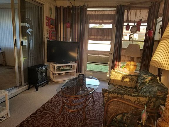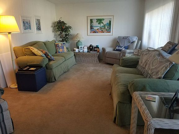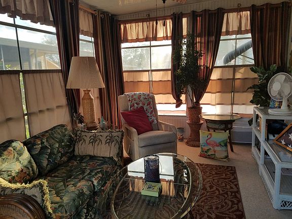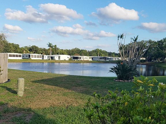 ****MOTIVATED SELLER**** Charming 2 bedroom, 2 bathroom "Turn Key" double wide. New A/C 2018! It has a large living room/dining combo, very light and bright with soft paint tones throughout. Kitchen has lots of cabinets, all New Appliances, a pantry, laminate flooring in a light brown, and a four seat breakfast bar. A cozy and inviting lanai with warm tones and Rattan furniture overlooks the glimmering lake. In addition there are two good size bedrooms, an enclosed carport, a shed with lots of storage/shelving, and a washer/dryer. Located in the age qualified community of Colony Cove. Lot rent is $790.