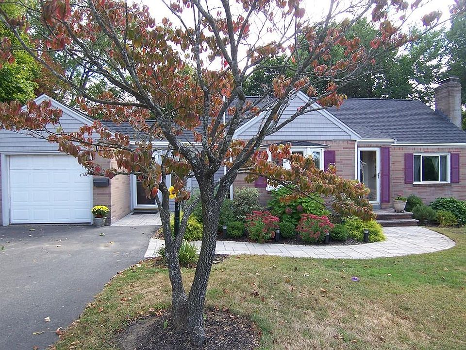Brick and Vinyl outside. Roof approx. 2 years old. Very nice expanded ranch with a finished basement and a third bedroom on the second floor. Nice fenced in yard. convenient location only short walk to the t station. Home has replacement windows a new cellar door \.