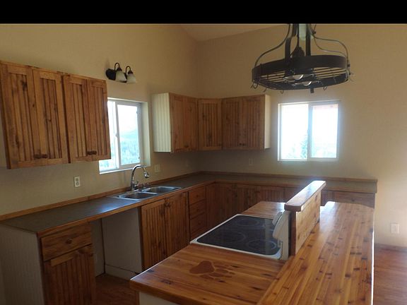 Adjacent to thousands of acres of USFS land. Enjoy breathtaking vistas and secluded privacy from this 3 bedroom 3 bath home with attached garage on 1.80 acres. Kitchen has custom cabinets, wood block counter tops and breakfast bar island. The large great room has vaulted ceilings, pergo flooring, wood stove and a 40 foot covered deck. main floor master suite with jetted tub, electric fireplace, quality ceiling fan, walk-in & 2nd closet. Lower level has bedroom, bathroom, family room and a bonus room and plumbed for a second kitchen. Southern Exposure, two access points, great views