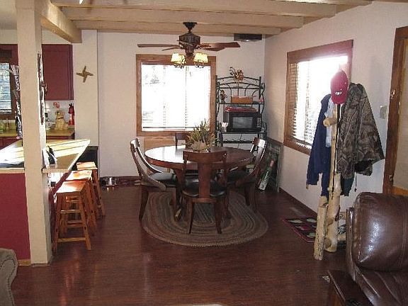 Great Mountain Chalet with views of Sentinel Peak. Newer kitchen appliances, washer & dryer also included; new wood floor in dining room; wood stove insert in living room; large wrap-around deck; high efficiency furnace; walk-out lower level from 2 car tandem garage; hot tub; exterior recently painted; new septic and new cistern installed; fenced dog run; Hughes Net for high speed internet.