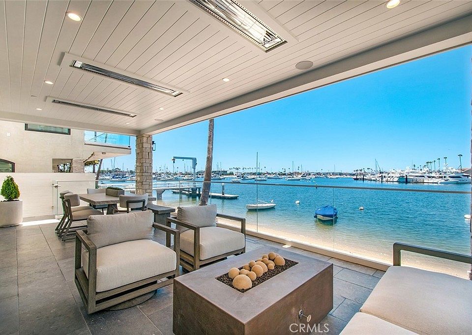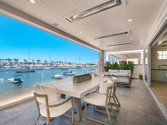 For the first time in more than 20 years, a newly constructed, yet-to-be-lived in home has come to market on picturesque Lido Isle. The epitome of a gracious coastal lifestyle and mesmerizing views awaits in this stunning waterfront home by Sailhouse. Offered, beautifully and tastefully furnished, with interior design perfected by Kelly Nutt Design, the residence is sited on a large lot, featuring 4 bedroom suites, an open floor plan perfectly blends classic east coast style with sophisticated yet relaxed Newport Beach living. Upon entering the home, you will be welcomed into a foyer with an elevator, adjacent powder room, mud room, and access to the oversized two-car garage. Stepping into the spacious kitchen and dining area, the great room features an abundance of natural light from expansive windows, including an entire wall of La Cantina sliding doors that open onto a covered, heated patio offering unobstructed, 180-degree views of the ever-changing bayfront scenery with rare, direct beach access. The kitchen boasts a Wolf 60-inch, 6-burner range and dual oven, Sub-Zero refrigerator and under-counter wine fridge, a convenient butler’s pantry, and an island for dining and entertaining. There is built-in cabinetry in the dining and living rooms as well as a fireplace. On the second level, the primary suite features a deck with breathtaking bay views, a fireplace, an adjacent office, separate his and her closets, and a sumptuous bathroom with dual vanities and a stand-alone tub. The upper level also has three secondary en suite bedrooms, laundry room with ample storage and private guest suite with a separate entrance and living area that is perfect for in-laws, college students returning home or friends that wish to stay awhile. Completing this custom home is a third-level rooftop deck with bbq island and breathtaking 180-degree views of the channel and peninsula. The home features, gorgeous stones, designer light fixtures and hardware throughout, stained white oak flooring, a custom wood handrail on the staircase and tongue and groove paneling throughout the living areas. Ideal for entertaining, the home also has built-in speakers in the living room, patio, all bedrooms, and rooftop deck. Google Nest thermostats and five Ring security cameras are also included for security. Enjoy an easy walk to Lido Marina Village and Lido's desirable amenities from this stunning home.