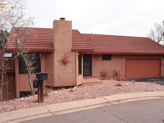 Hard to beat the views from this home! Nestled in at the end of a quiet cul de sac on the top of the world you'll have wonderful views of Garden of the Gods and Pikes Peak!! This beautiful 2 bedroom, 3 bathroom home features a third room in the basement that could serve as a non conforming third bedroom. The big safe in the 3rd room is included. Dine in kitchen with granite island, food pantry, copper sink, under cabinet lighting and walk out to the back deck. Home features a "to-die-for" deck! Master bedroom has some built in cabinets, adjoining full bath featuring double sink vanity and skylight. The basement has a family room with built in desk space, full bath with walk in shower and the bedroom has a walkout to the backyard as well. Other amenities include vaulted ceilings and fireplace in the living room, central air, granite counters in the bathrooms, 2 car attached garage with metal storage rack and more! Home includes range, refrigerator, dishwasher, microwave, and nice Maytag front loader washer/dryer. District 14 Schools.