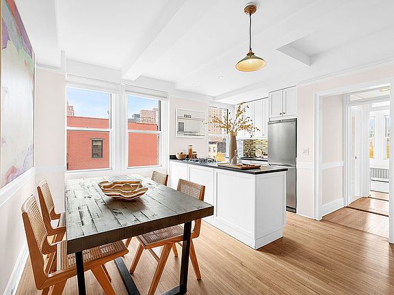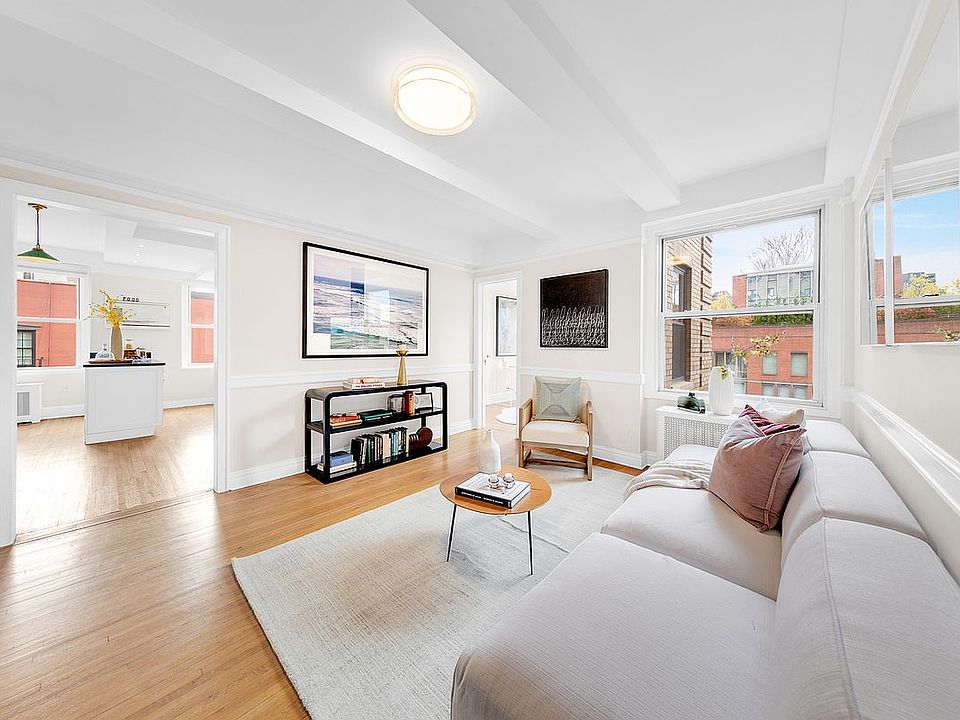 Step inside a rare classic six in the heart of Chelsea — the building’s only combined three-bedroom home. Residence 6DE is a serene and spacious retreat. A foyer leads into a bright, airy living room, complete with a wet bar and kitchenette, perfect for entertaining.